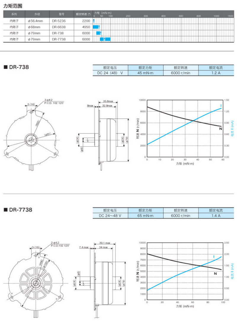 DR-5236,DR-6638,DR-738,DR-7738,內(nèi)轉(zhuǎn)子直流無刷馬達(dá)