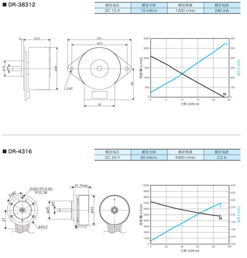 DR-38312,DR-4316,DR-4734,外轉(zhuǎn)子直流無刷馬達(dá)