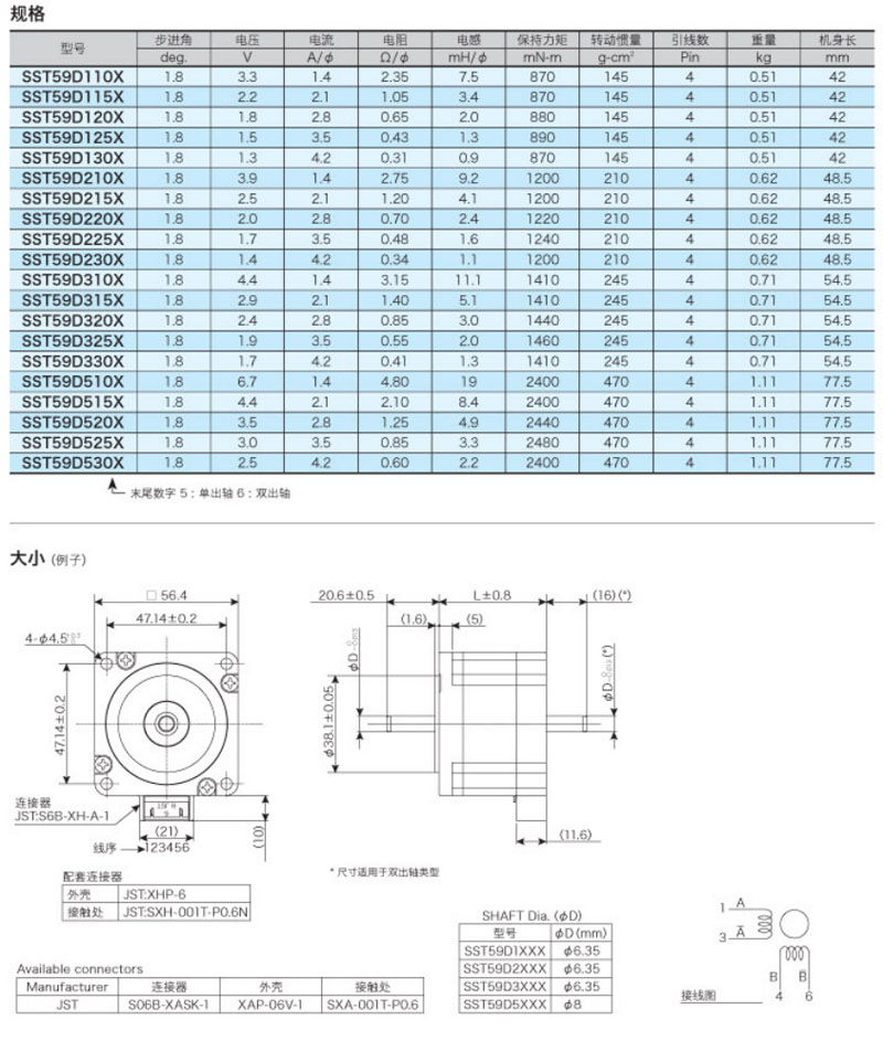 SST59D110X,SST59D115X,SST59D120X,SST59D125X,SST59D130X,兩相混合步進(jìn)馬達(dá)