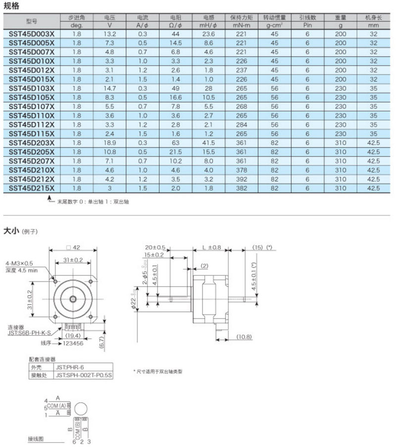 SST45D003X,SST45D005X,SST45D007X,SST45D010X,SST45D015X,兩相混合步進馬達 |