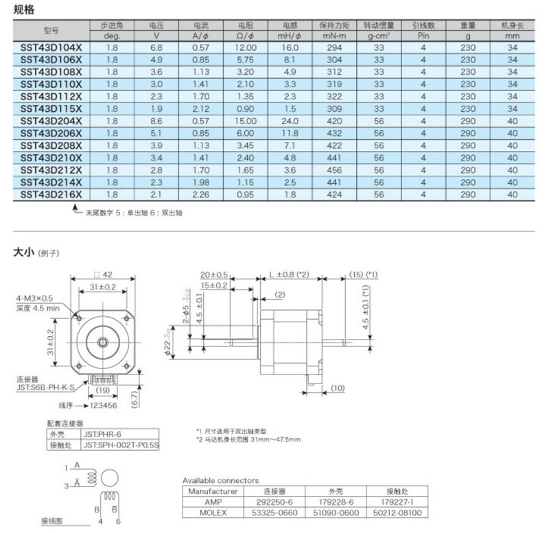 SST43D104X,SST43D106X,SST43D108X,SST43D110X,SST43D112X,兩相混合步進(jìn)馬達(dá)