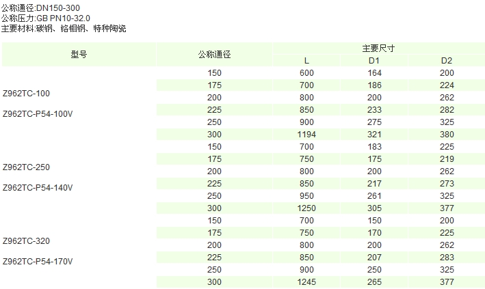 Z962TC-320-DN150,Z962TC-320-DN175,Z962TC-320-DN200,Z962TC-320-DN225,Z962TC-320-DN300,