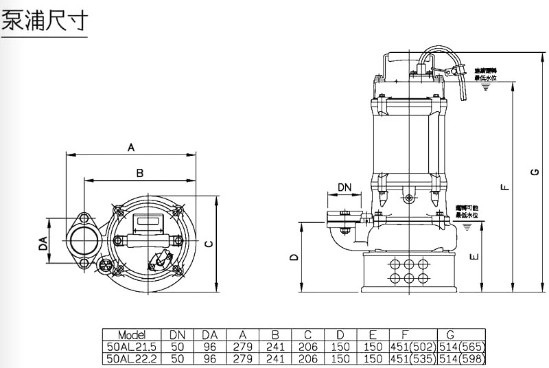 50AL21.5,50AL22.2,HCP PUMP鑄鐵污水泵浦