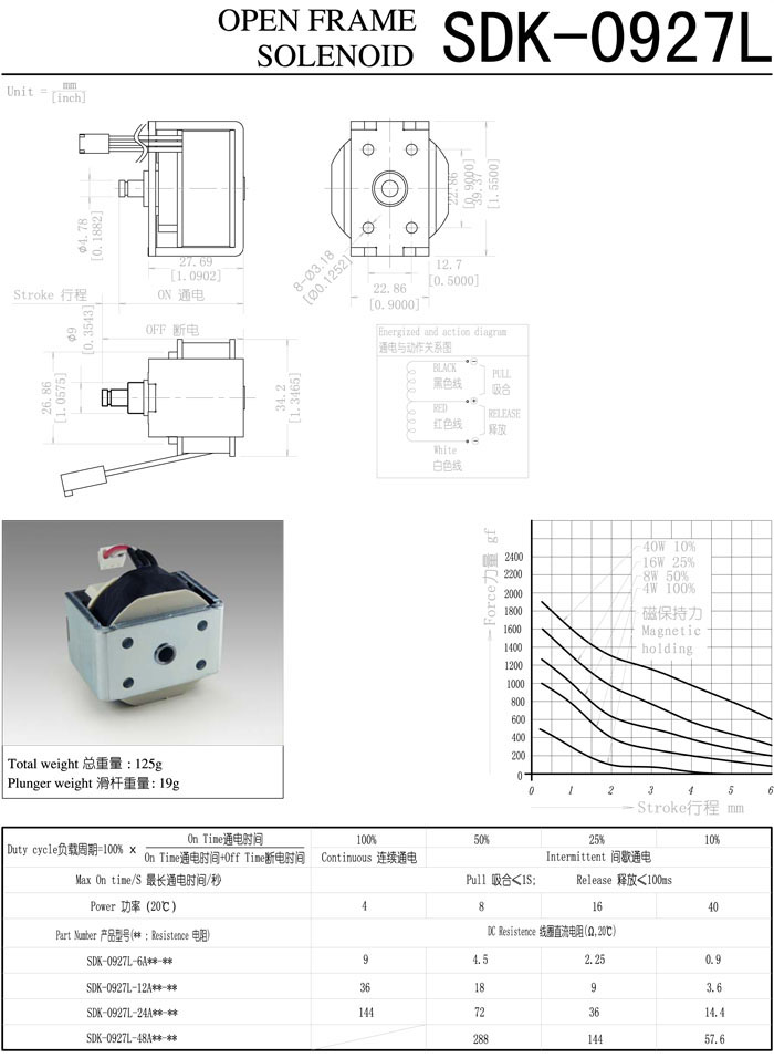 SDK-0927L-6A,SDK-0927L-12A,SDK-0927L-24A,SDK-0927L-48A,直動電磁鐵 |