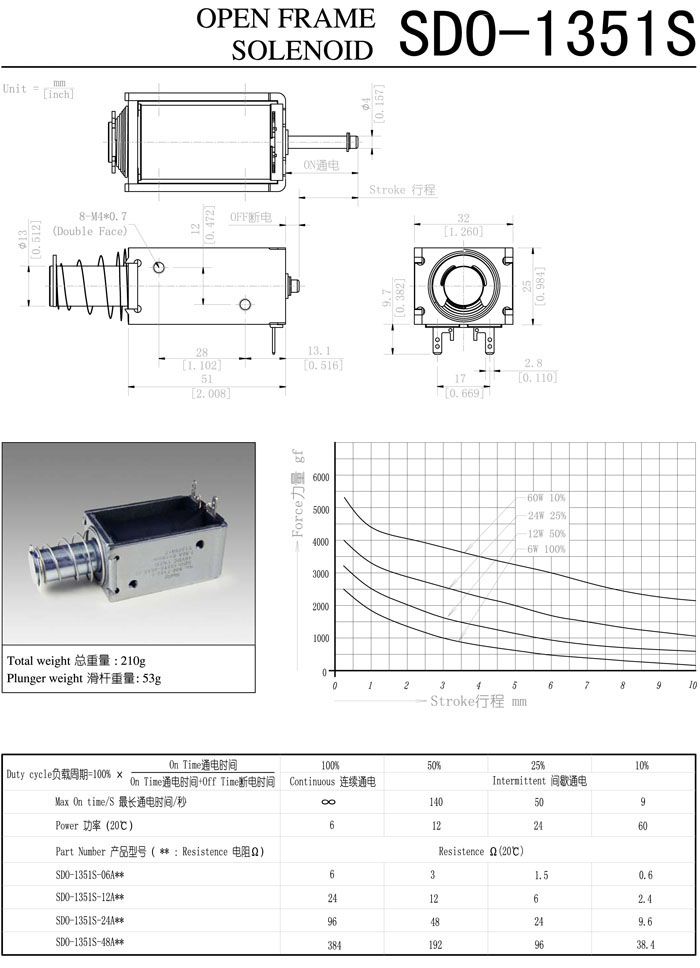 SDO-1351S-06A,SDO-1351S-12A,SDO-1351S-24A,SDO-1351S-48A,直動(dòng)電磁鐵