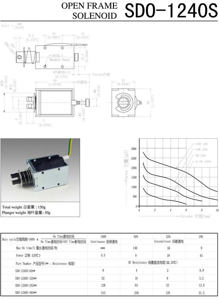 SDO-1240S-6A,SDO-1240S-12A,SDO-1240S-24A,SDO-1240S-48A,直動電磁鐵 |