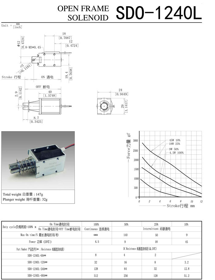 SDO-1240L-6A,SDO-1240L-12A,SDO-1240L-24A,SDO-1240L-48A,直動(dòng)電磁鐵