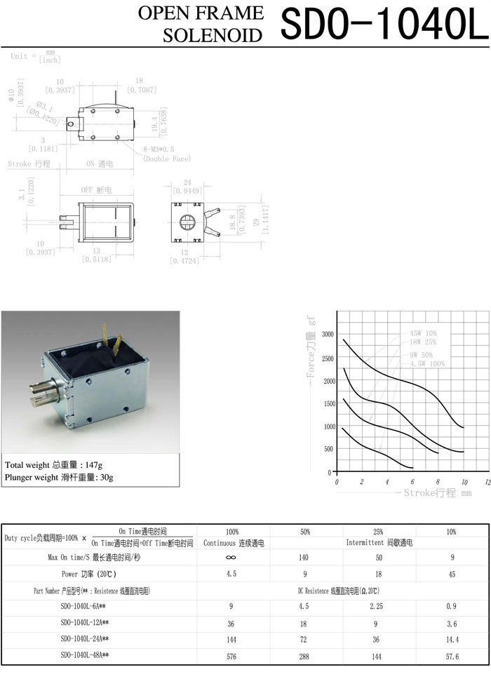 SDO-1040L-6A,SDO-1040L-12A,SDO-1040L-24A,SDO-1040L-48A,直動(dòng)電磁鐵
