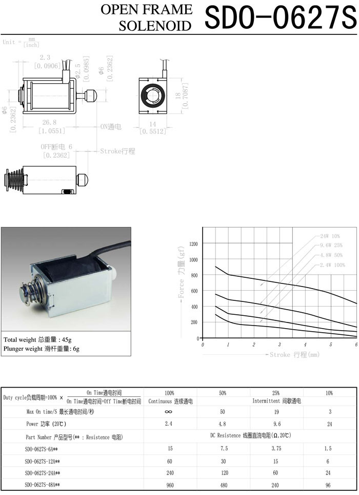 SDO-0627S-6A,SDO-0627S-12A,SDO-0627S-24A,SDO-0627S-48A,直動電磁鐵 |