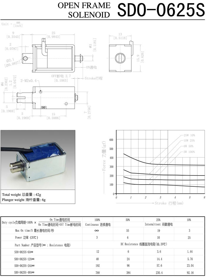 SDO-0625S-6A,SDO-0625S-12A,SDO-0625S-24A,SDO-0625S-48A,直動電磁鐵 |