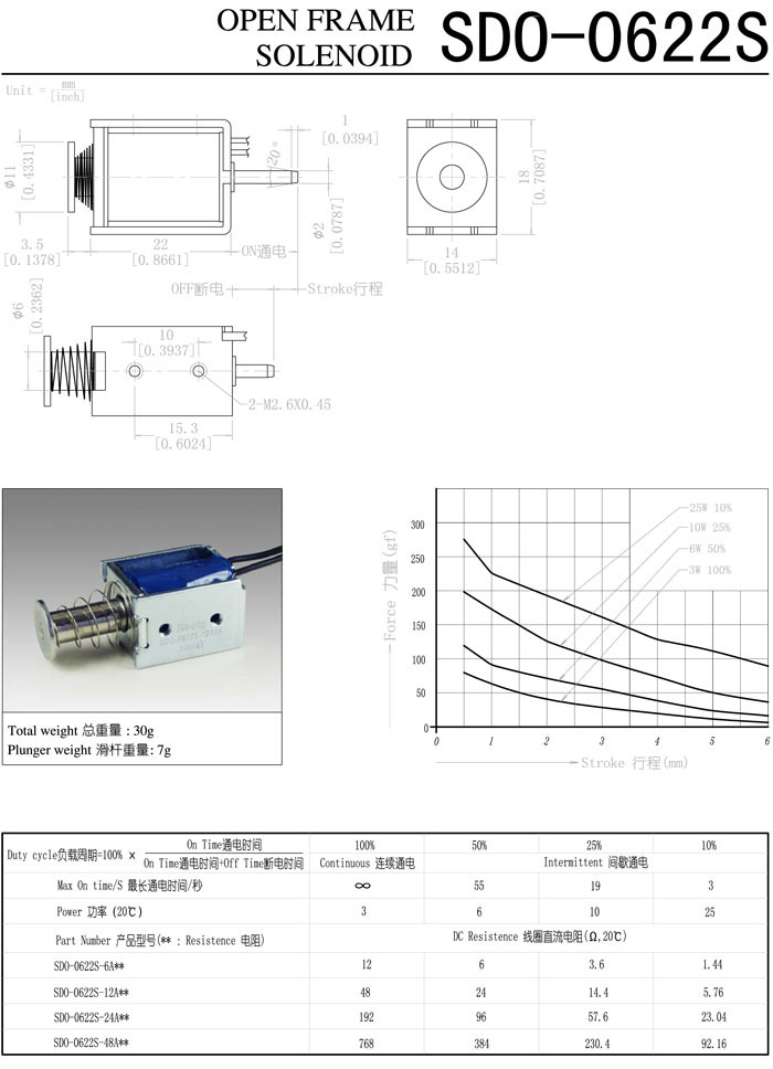 SDO-0622S-6A,SDO-0622S-12A,SDO-0622S-24A,SDO-0622S-48A,直動(dòng)電磁鐵