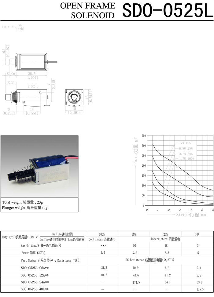 SDO-0525L-06A,SDO-0525L-12A,SDO-0525L-24A,SDO-0525L-48A,直動(dòng)電磁鐵