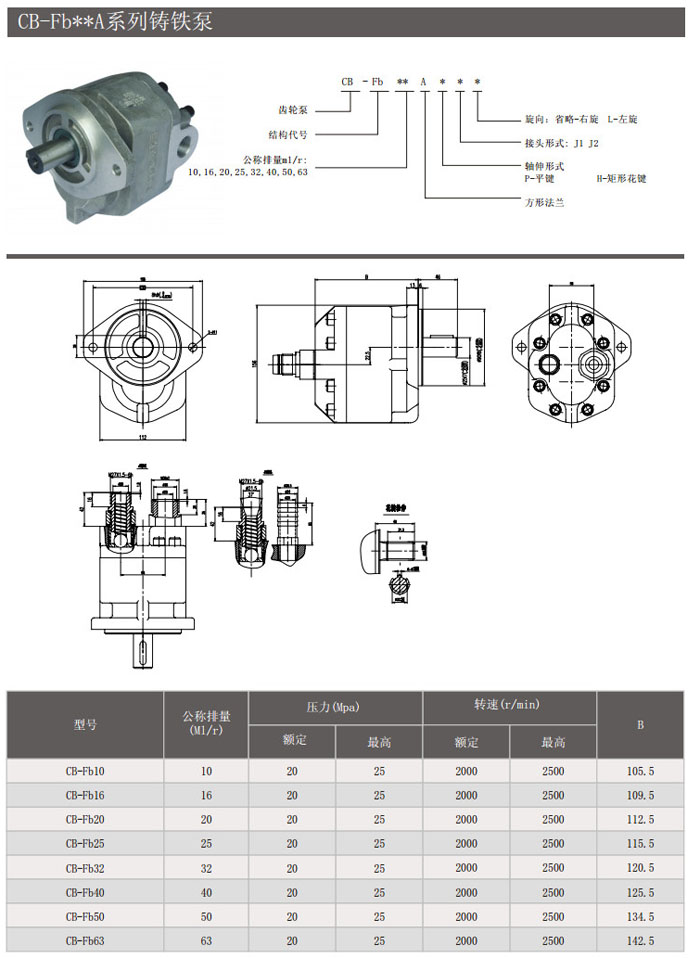 CB-Fb10,CB-Fb16,CB-Fb20,CB-Fb25,CB-Fb32,CB-Fb40,CB-Fb50,CB-Fb63,CB-Fb10AHJ2L,鑄鐵泵
