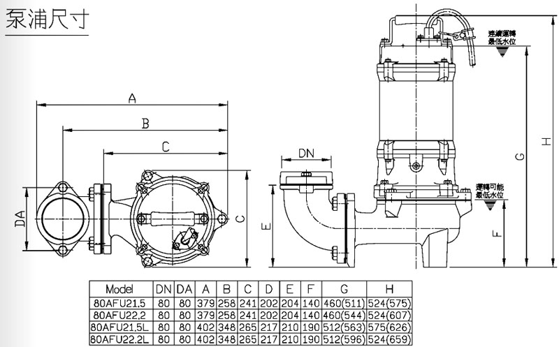 80AFU21.5,80AFU22.2,80AFU21.5L,80AFU22.2L,HCP PUMP污物廢水泵浦