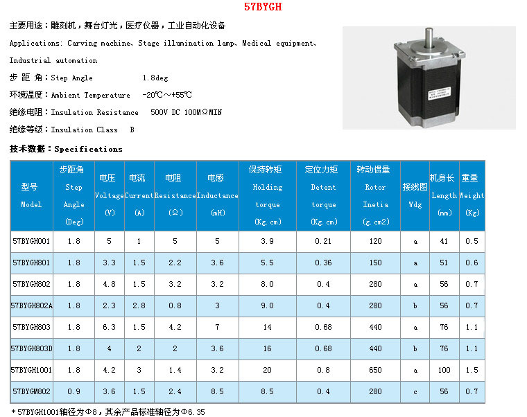 57BYGH001,57BYGH801,57BYGH802,57BYGH802A,57BYGH803,混合式步進(jìn)電機(jī)