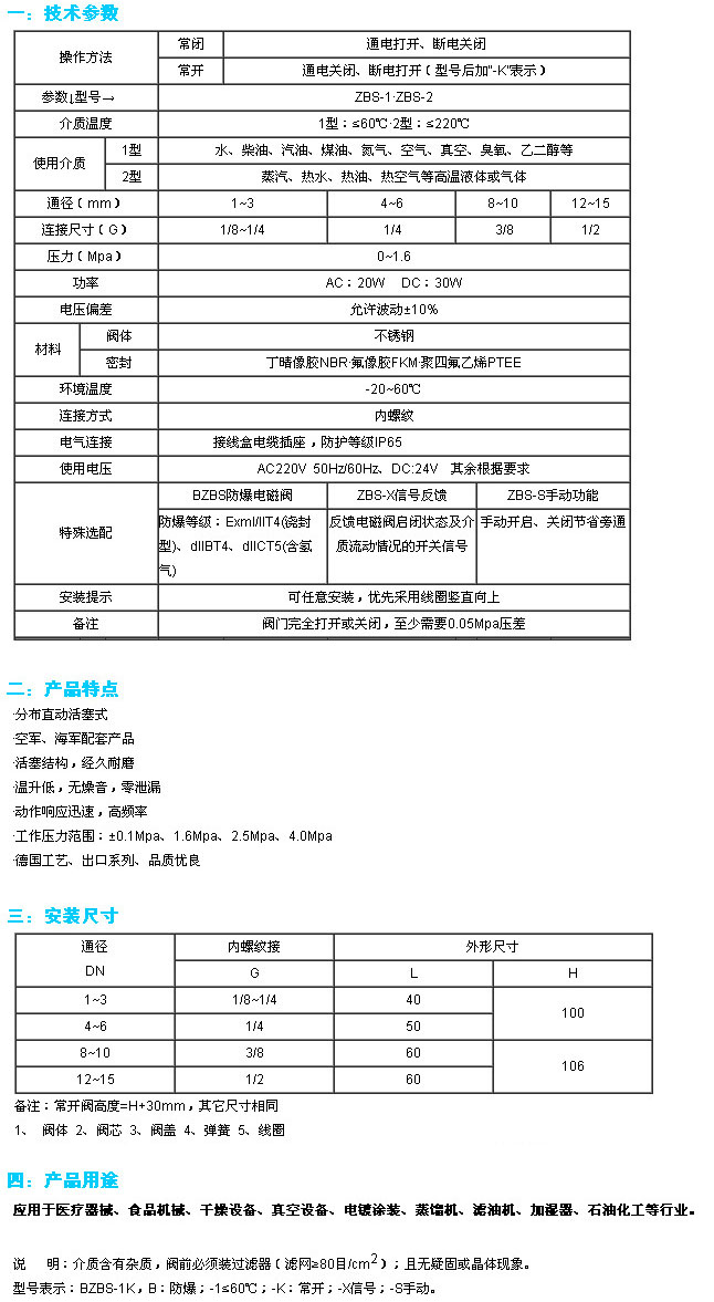 BZBS-1K-DN1,BZBS-1K-DN3,BZBS-1K-DN4,BZBS-1K-DN6,BZBS-1K-DN8,BZBS-1K-DN10,出口不銹鋼電磁閥