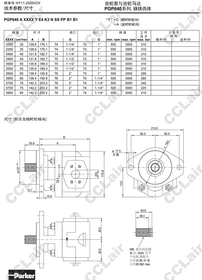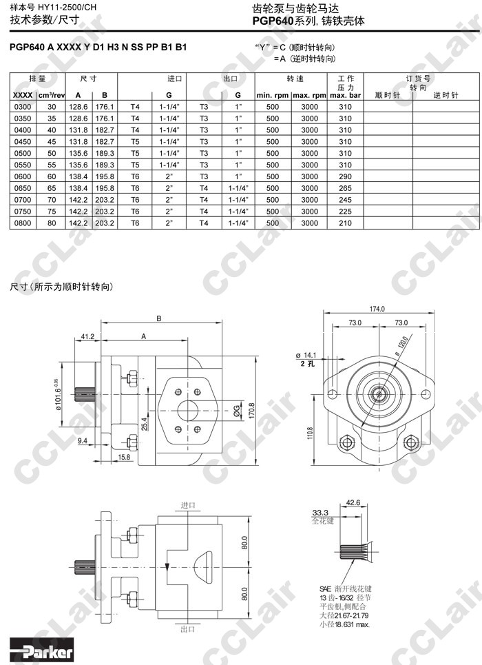 PGP640A,PGP640B,PGP640A0300CD1A3,PGP640B0300CD1A3,PGP640A0350AD1A3,Parker齒輪泵 |