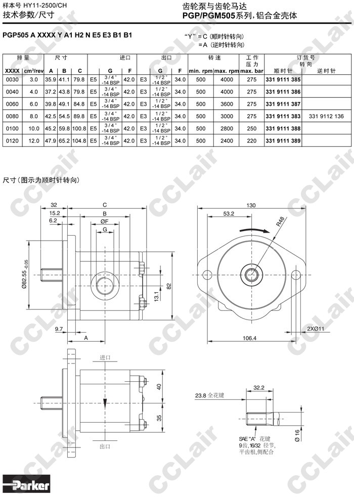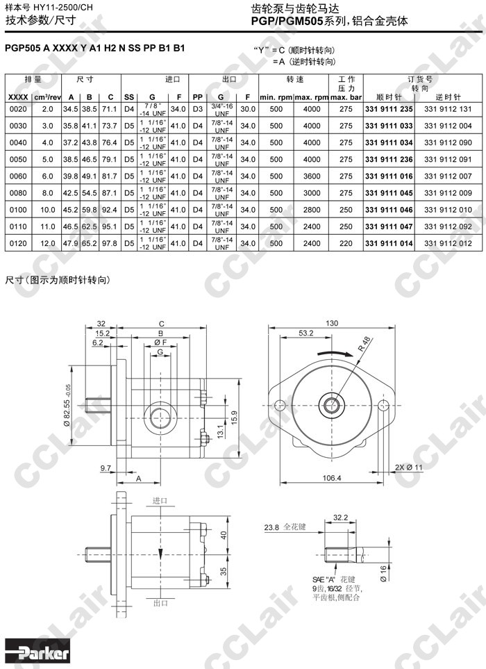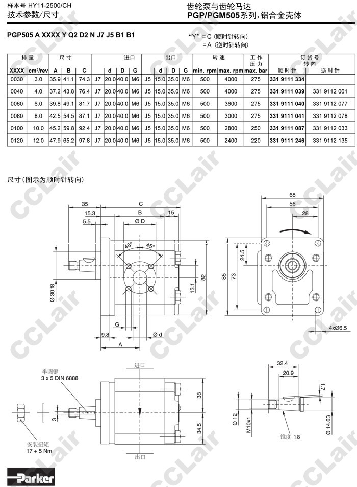 PGM505A,PGM505C,PGM505B,PGM505A0030CA1H1,PGM505C0030CA1H1,PGM505B0030CA1H1,Parker齒輪馬達(dá)