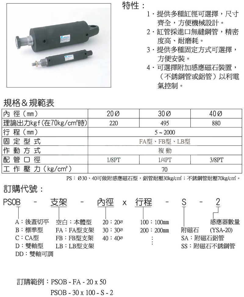 PSOA-FA,PSOB-FB,PSOC-FA,PSOD-LB,PSODD-LB,panix圓型油壓缸