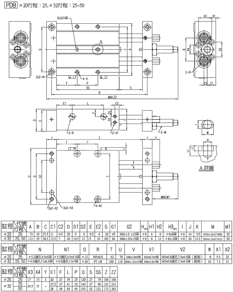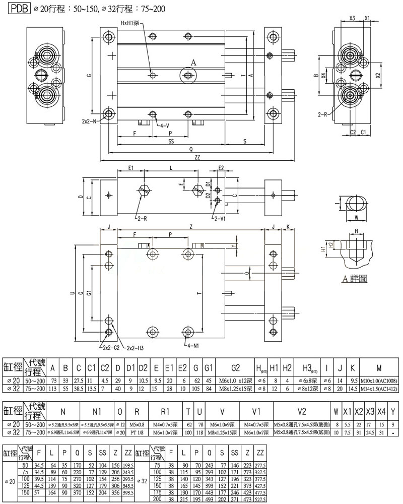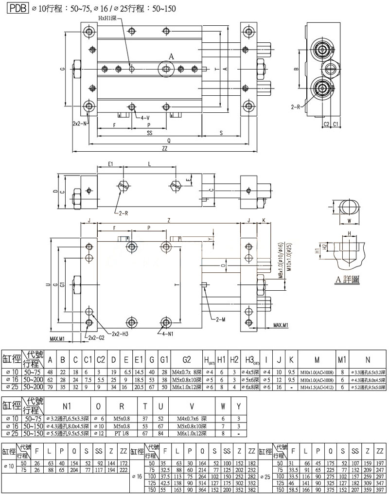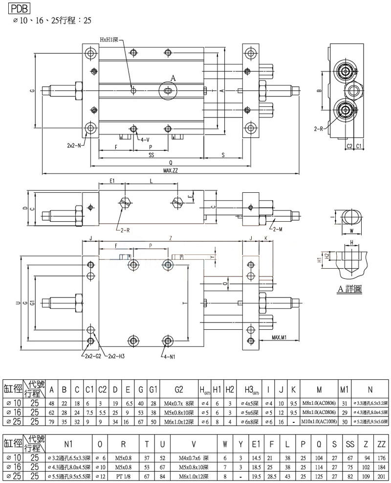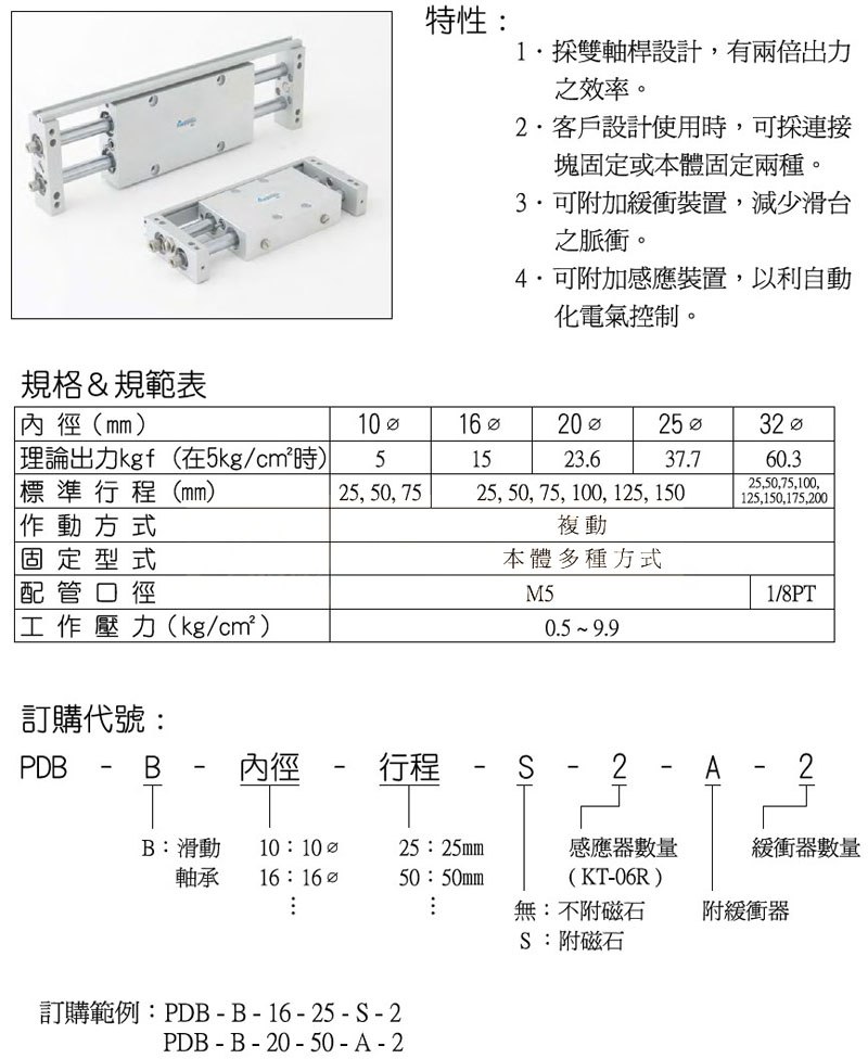 PDB-B-10,PDB-B-16,PDB-B-20,PDB-B-25,PDB-B-32,panix滑動軸承式滑臺氣缸 |