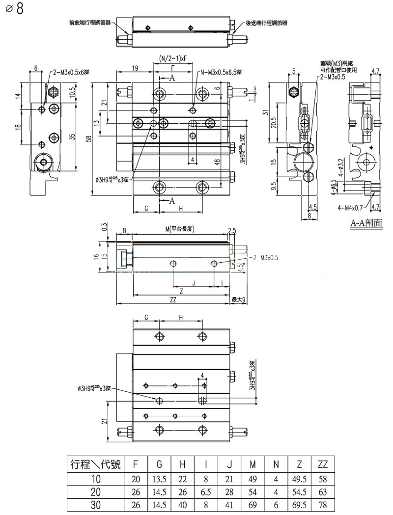 PXF-8-10,PXF-16-50,PXF-20-30,PXF-12-30,panix精巧型滑軌氣壓缸