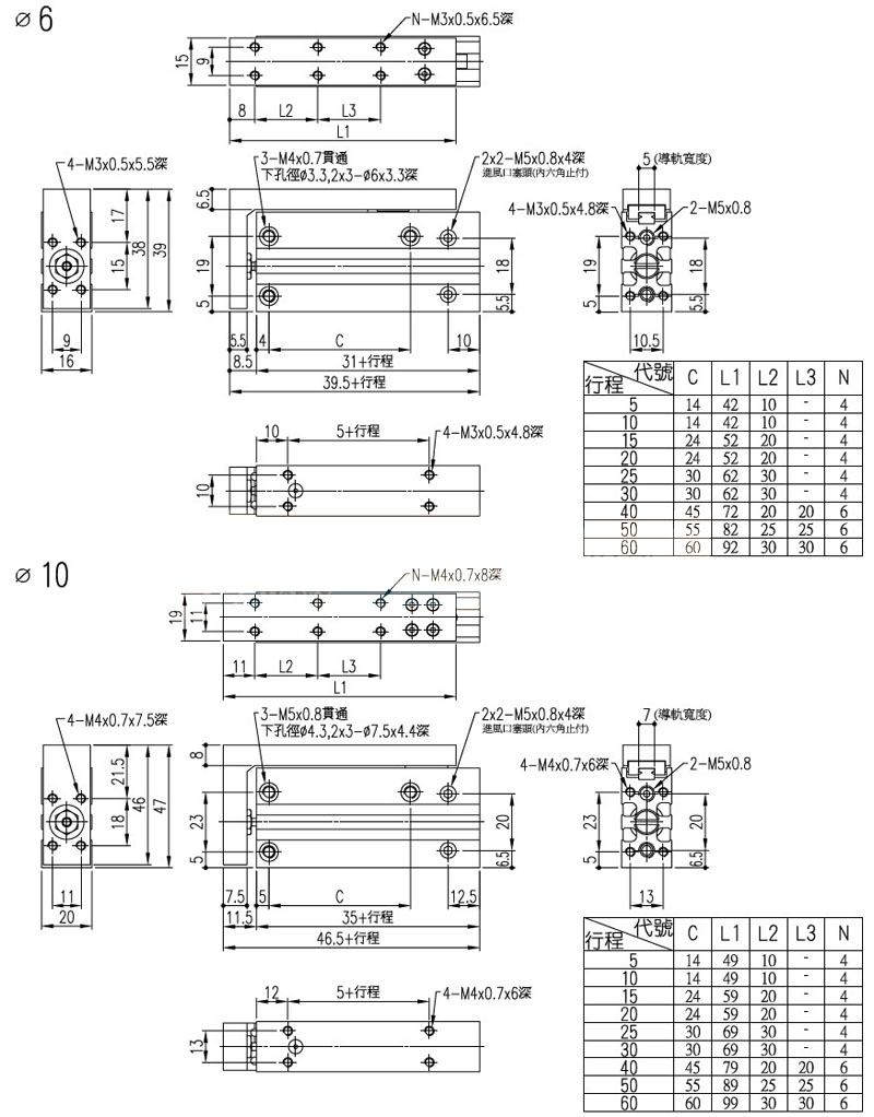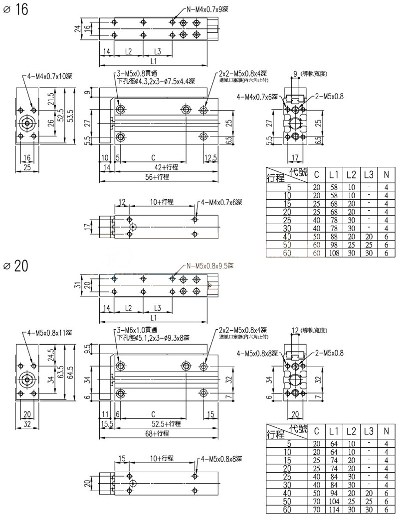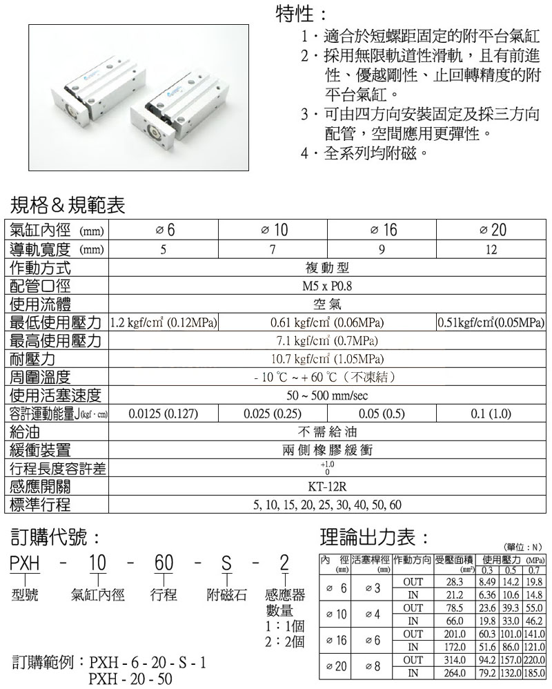 PXH-6-5,PXH-10-25,PXH-16-30,PXH-20-40,panix精巧型滑軌氣壓缸