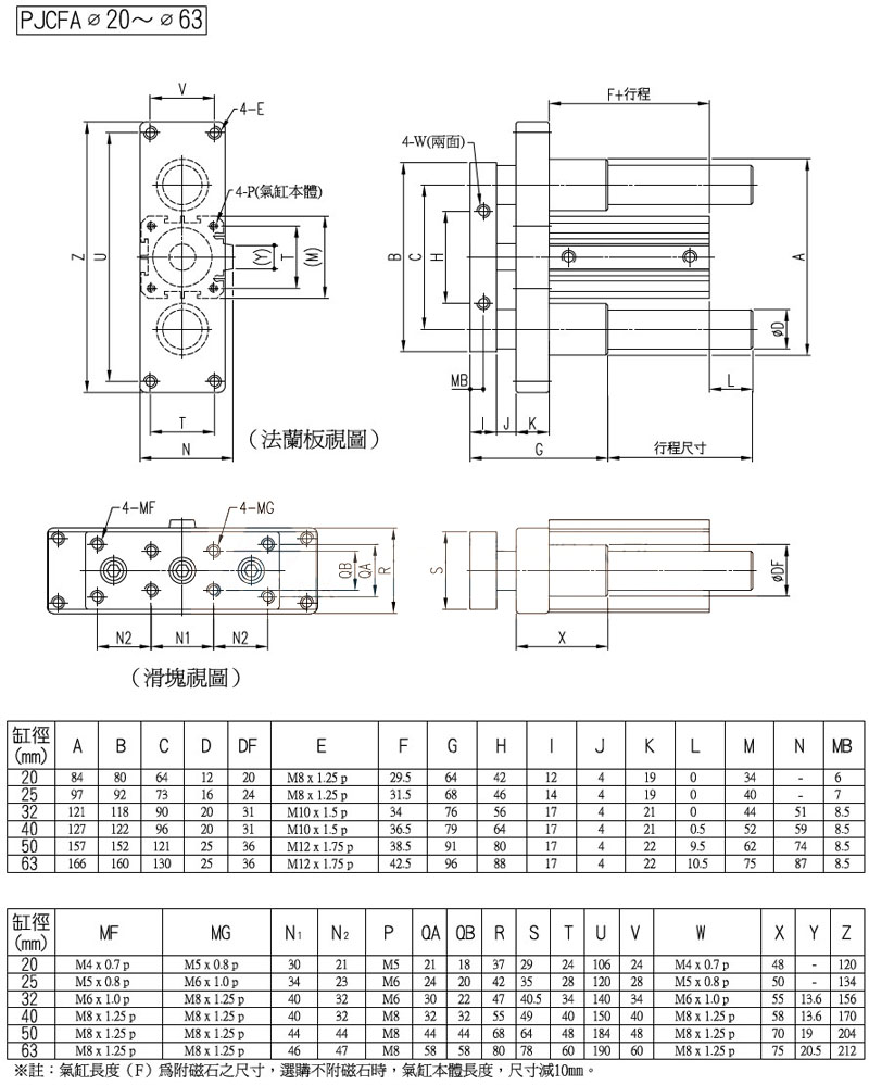 PJCBA-20,PJCFA-32,PJCBA-40,PJCFAAD-20,PJCBAAD-32,panix滑臺治具氣缸