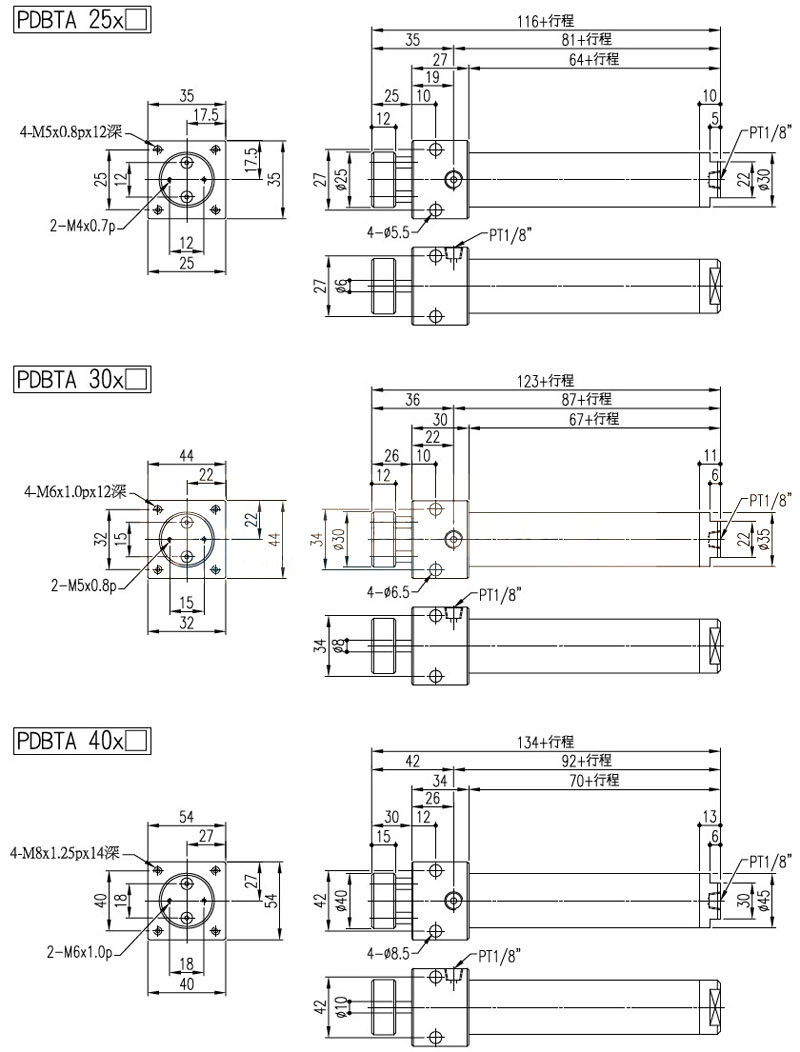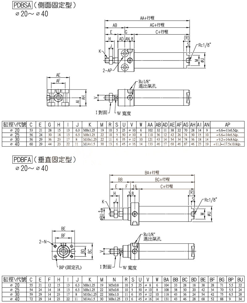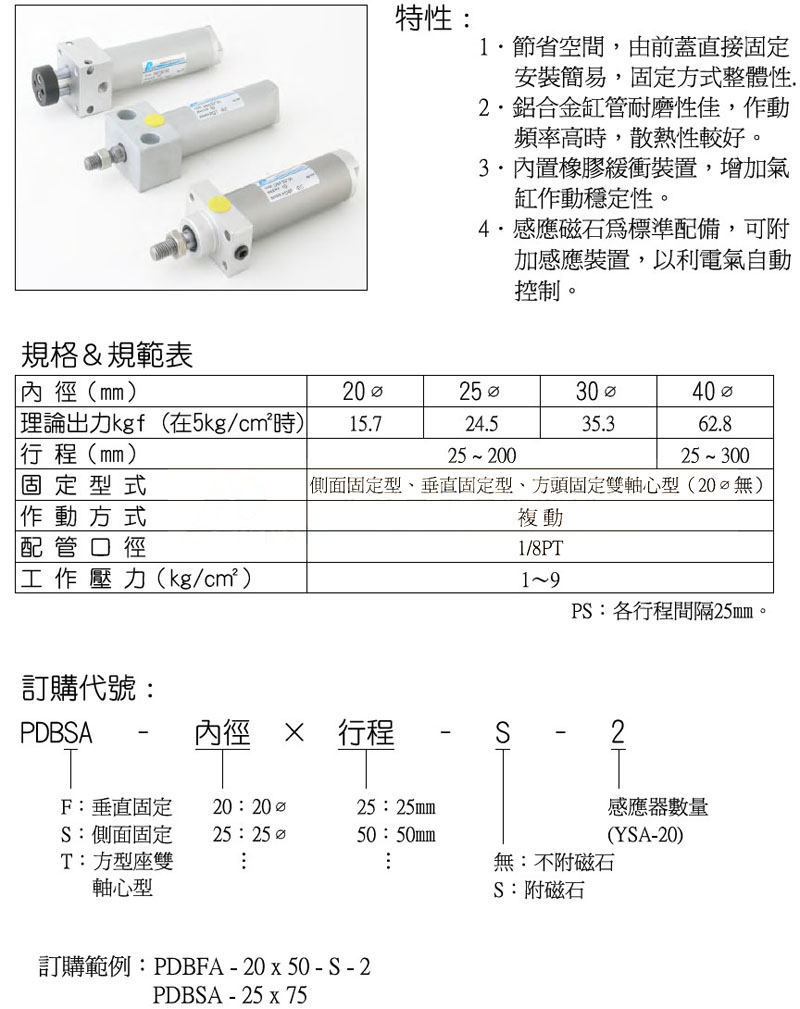 PDBFA-20,PDBFA-25,PDBTA-30,PDBTA-40,PDBSA-20,PDBSA-25,panix方頭固定氣缸 |