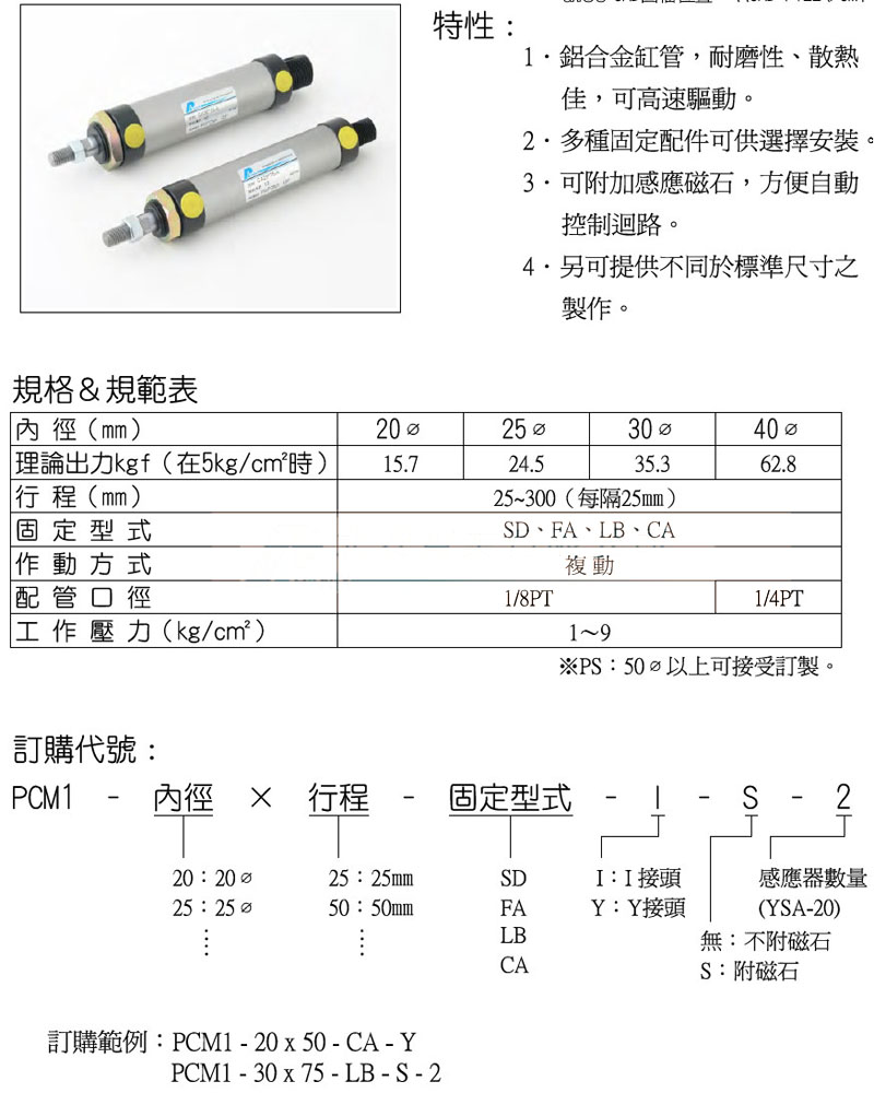PCM1-20*25,PCM1-25*50,PCM1-30*75,PCM1-40*100,panix迷你鋁合金氣缸