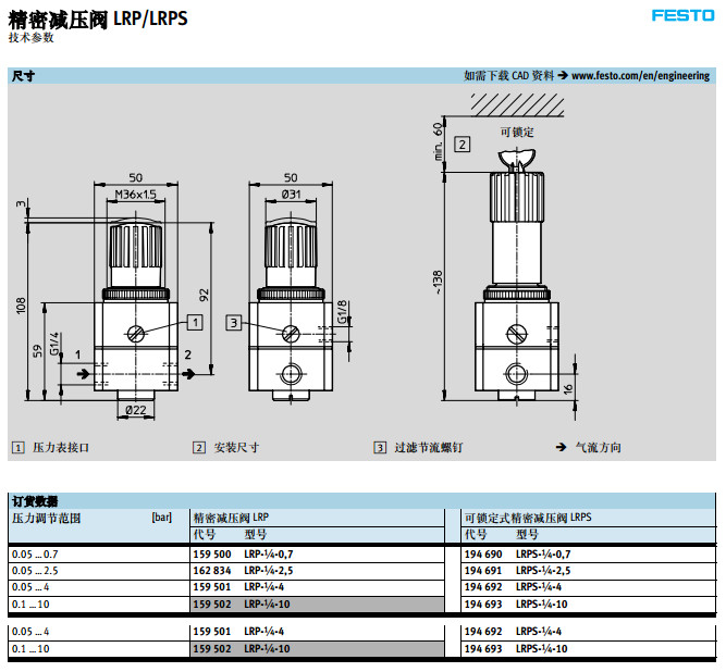 LRP-1/4-0.7,LRP-1/4-2.5,LRPS-1/4-4,LRPS-1/4-10,festo精密減壓閥