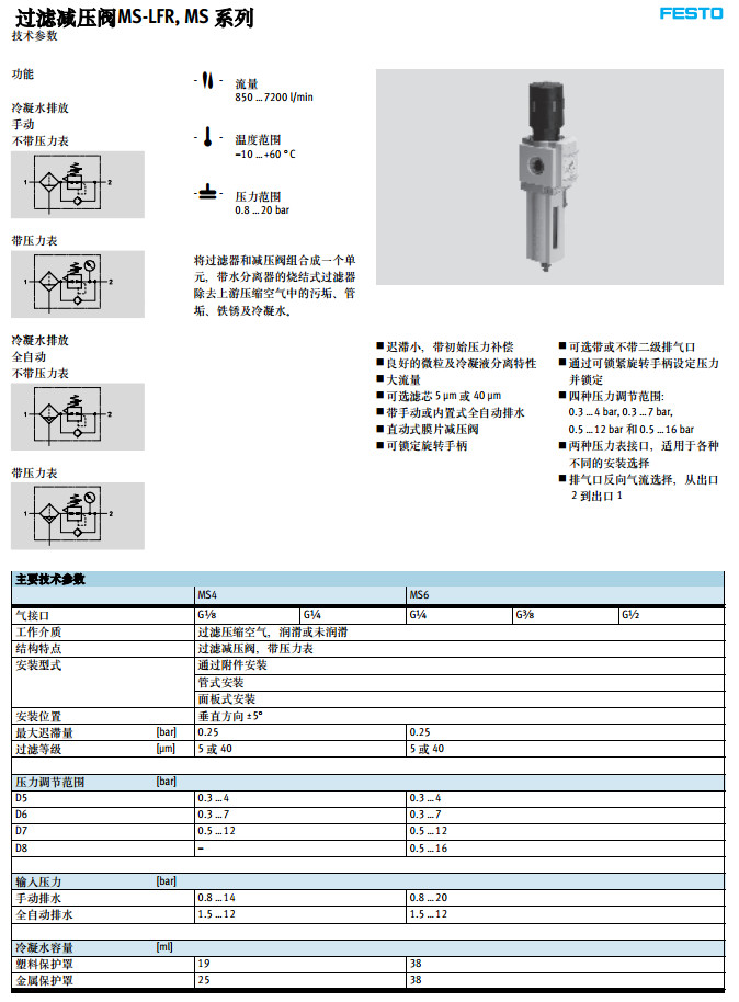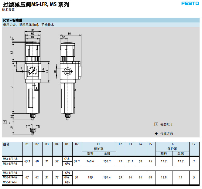MS4-LFR-1/8,MS4-LFR-3/8,MS6-LFR-1/8,MS6-LFR-3/8,festo過濾減壓閥