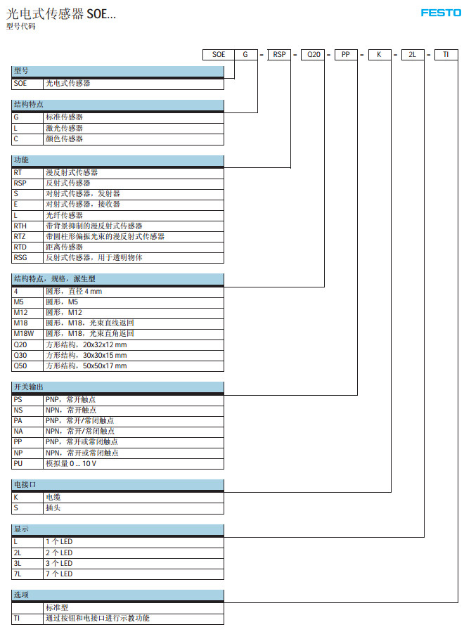 SOEG-RT,SOEG-RSP,SOEC-S,SOEL-E,SOEC-L,SOEL-RTH,festo光電式傳感器