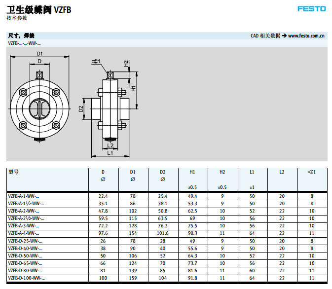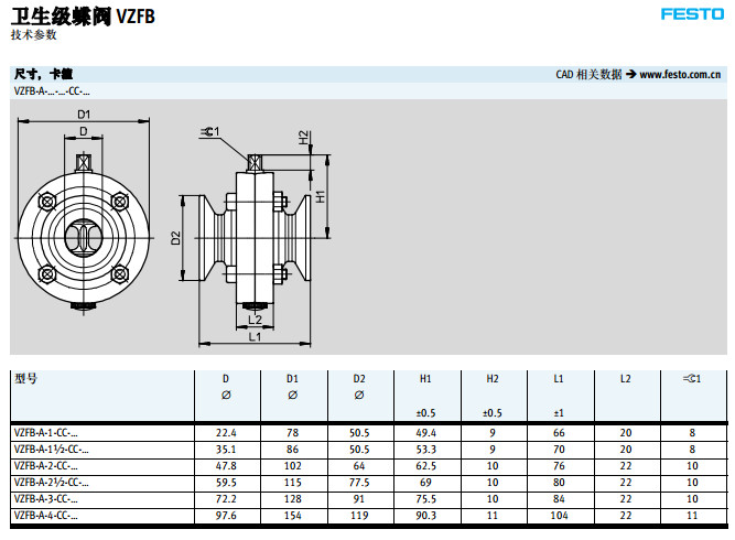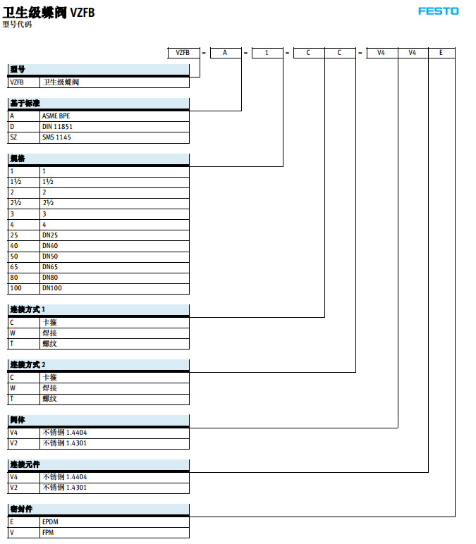 VZFB-A-1-CC,VZFB-A-3-CT,VZFB-A-2-WW,VZFB-A-4-TC,festo衛(wèi)生級(jí)蝶閥