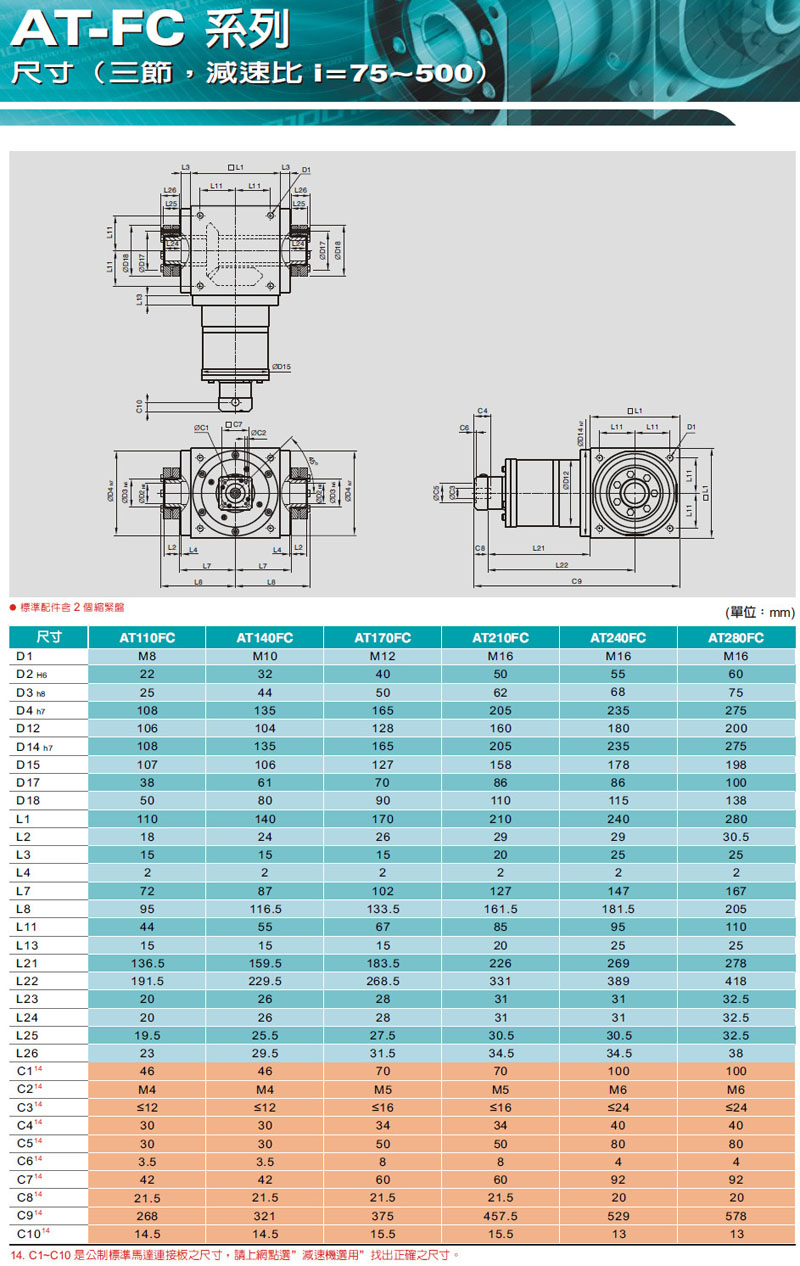AT065-FC,AT075-FC,AT090-FC,AT110-FC,AT140-FC,AT170-FC,AT210-FC,伺服專用減速機