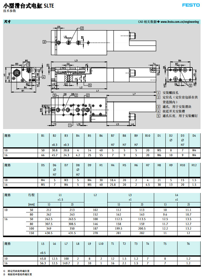 SLTE-10-50,SLTE-16-80,SLTE-16-100,SLTE-16-150,festo小型滑臺式電缸
