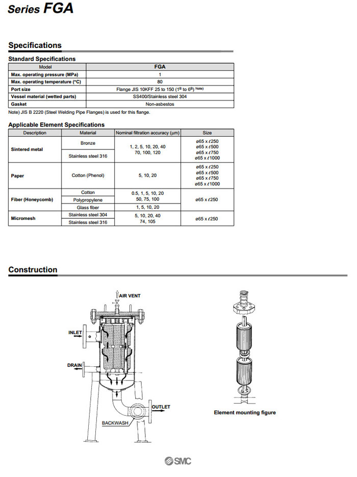 FGAS04,FGAS07,FGAS09,FGAS18,FGAS22,FGAS29,FGAS34,FGAS37,FGAS53,FGAS83,FGAS83D-60,SMC工業(yè)用過濾器