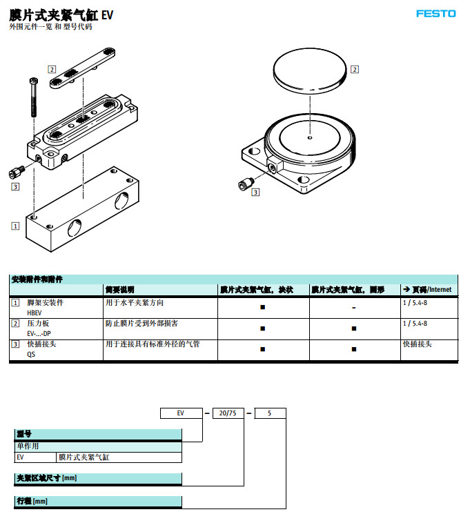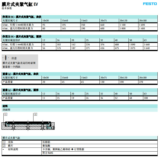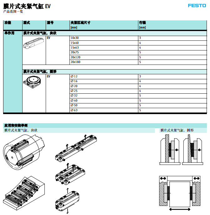 EV-10*30,EV-15*40,EV-15*63,EV-20*75,EV-12,EV-20,EV-32,EV-40,festo膜片式夾緊氣缸 |