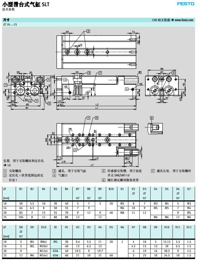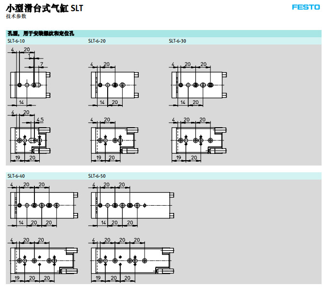 SLT-6,SLT-10,SLT-16,SLT-20-10-P-A,SLT-25-20-A-CC-B,festo小型滑臺(tái)式氣缸