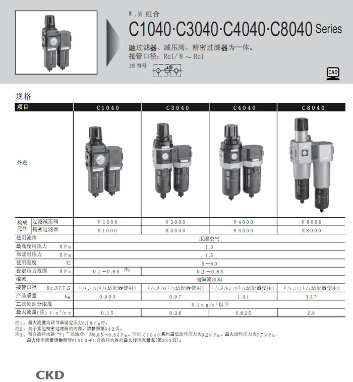 C1040-6,C1040-8,C3040-8,C3040-10,C4040-8,C4040-10,C4040-15,C8040-20,C8040-25,CKD二聯(lián)件