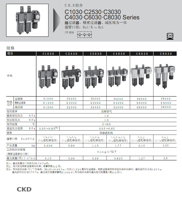 C1030-6,C1030-8,C2530-6,C3030-10,C4030-8,C4030-10,C4030-15,C6030-20,C6030-25,C8030-20,CKD三聯(lián)件