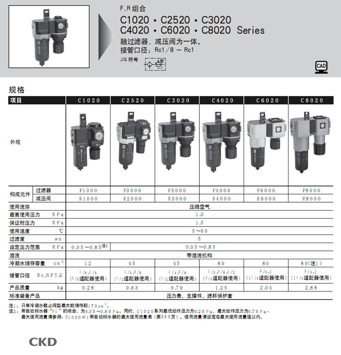 C1020-6,C1020-8,C2520-6,C3020-10,C4020-8,C4020-10,C4020-15,C6020-20,C6020-25,C8020-20,CKD二聯(lián)件