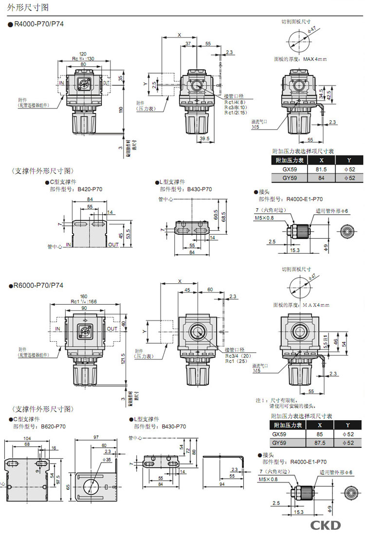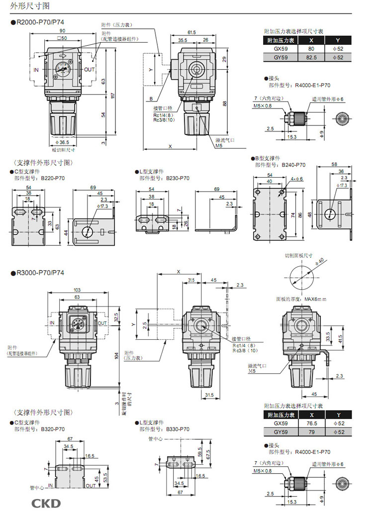 R2000-8,R2000-10,R3000-8,R3000-10,R4000-8,R4000-10,R4000-15,R6000-20,R6000-25,CKD減壓閥 |
