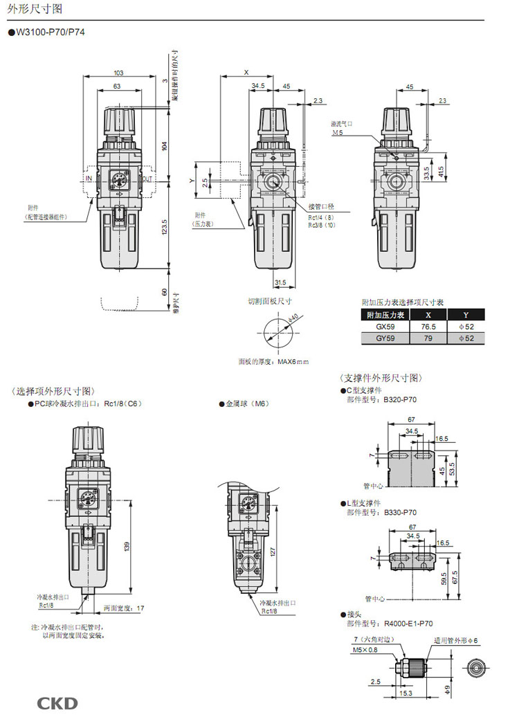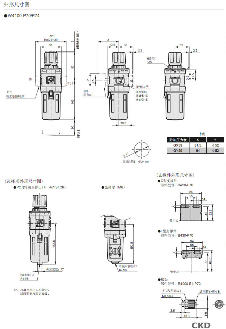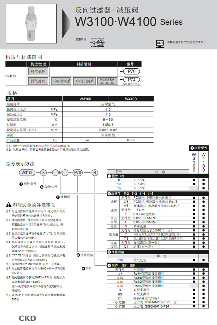 W3100-8,W3100-10,W4100-8,W4100-10,W4100-15,CKD過濾減壓閥