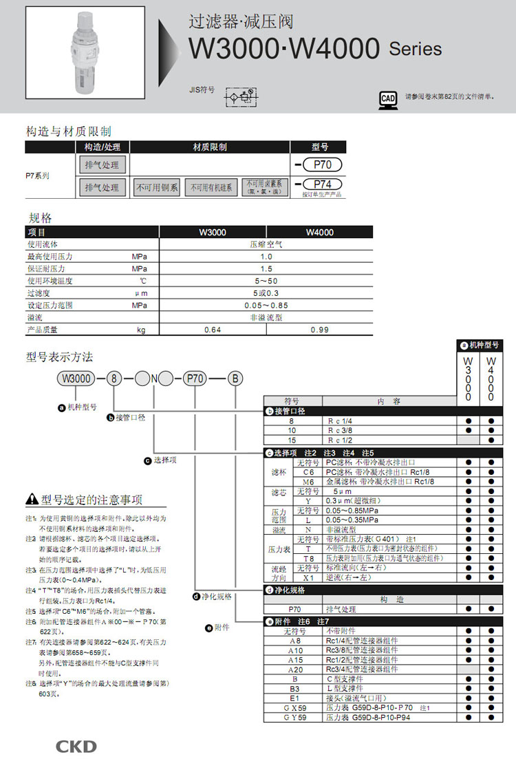 W3000-8,W3000-10,W4000-8,W4000-10,W4000-15,CKD過(guò)濾減壓閥