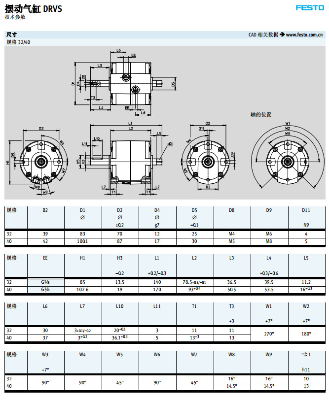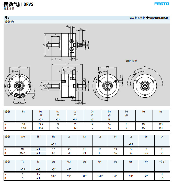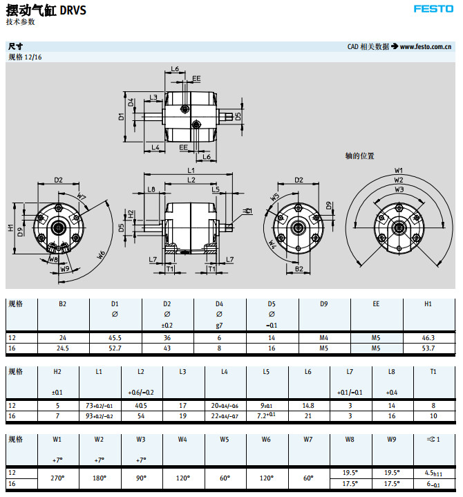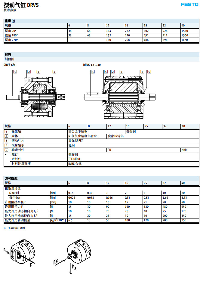 DRVS-6,DRVS-8,DRVS-12,DRVS-16,DRVS-25,DRVS-32,DRVS-40,festo擺動氣缸