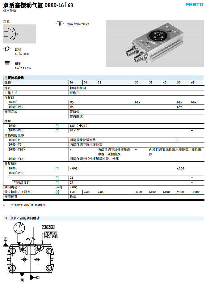 DRRD-16,DRRD-20,DRRD-25,DRRD-32,DRRD-40,DRRD-50,DRRD-63,festo擺動(dòng)氣缸