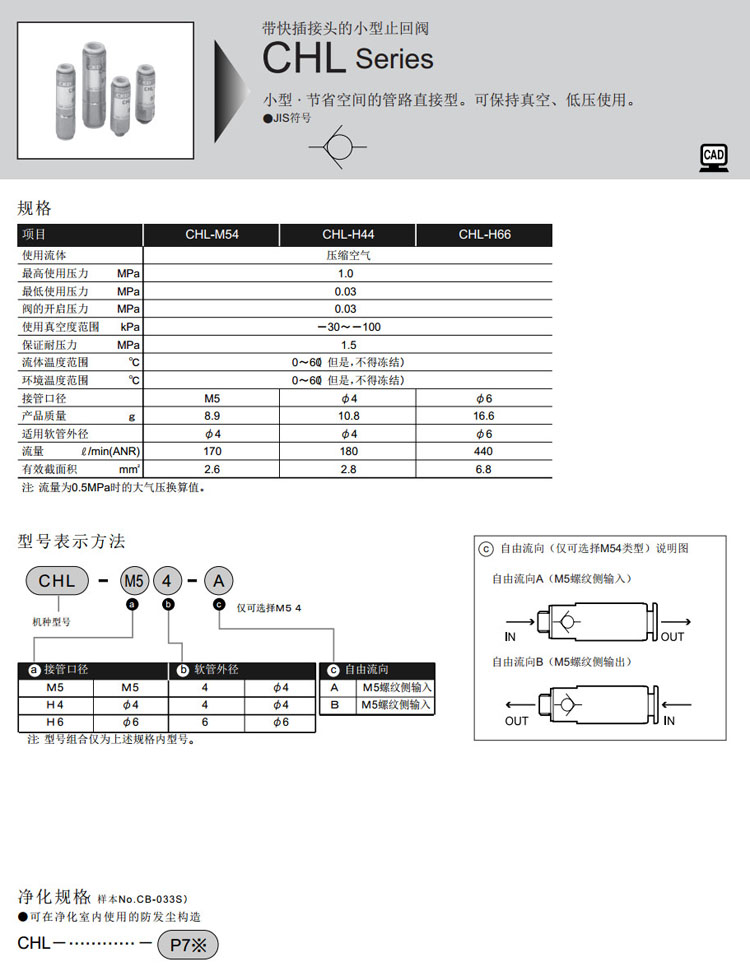 CHL-M54,CHL-H44,CHL-H66,CKD止回閥