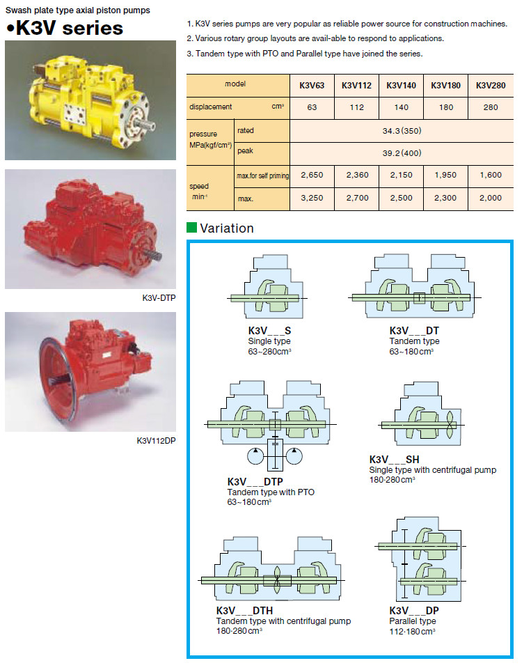 K3V63,K3V112,K3V140,K3V180,K3V280,Kawasaki液壓泵