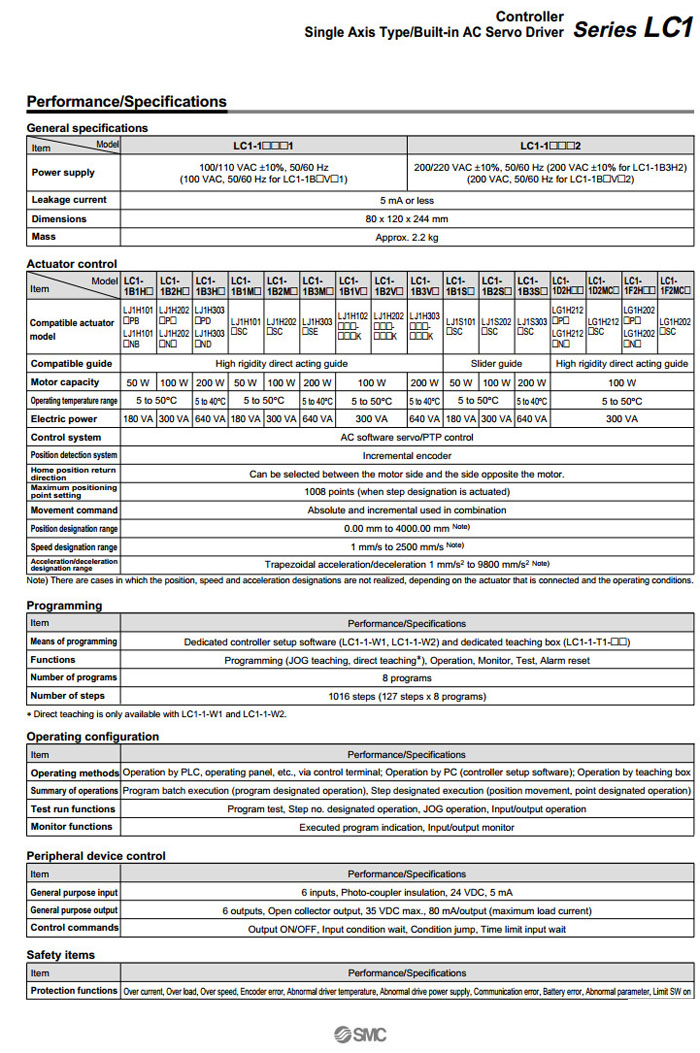LC2-1B1H2-N3,LC2-1D1H2-N3,LC2-1F1H2-N3,LC2-1B2H2-N3,LC2-1D2H2-N3,LC2-1F2H2-N3,SMC伺服電機(jī)用控制器 |