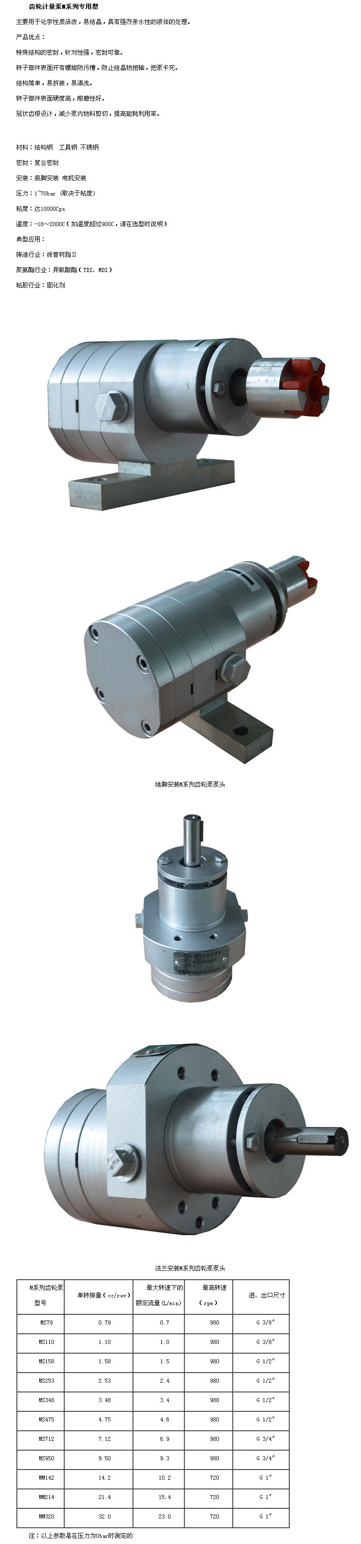 MS79,MS110,MS158,MS253,MS348,MS475,MS712,MS950,MM142,MM214,MM320,齒輪計量泵